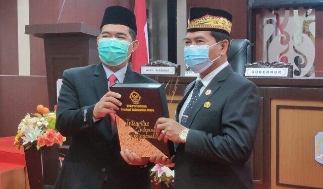 Predikat opini WTP diserahkan langsung Kepala BPK RI Perwakilan Kaltara Agus Priyono kepada Gubernur Kaltara Zainal A.Paliwang, didampingi Wakil Gubernur (Wagub) Yansen TP serta disaksikan Ketua DPRD Kaltara Norhayati Andris dan sejumlah anggota dewan maupun Forkopimda.