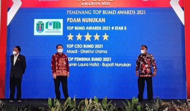 Sementara Bupati Nunukan Hj. Asmin Laura Hafid dinyatakan sebagai Top Pembina BUMD 2021, dan Direktur Utama PDAM Nunukan Masdi sebagai Top CEO BUMD 2021.
