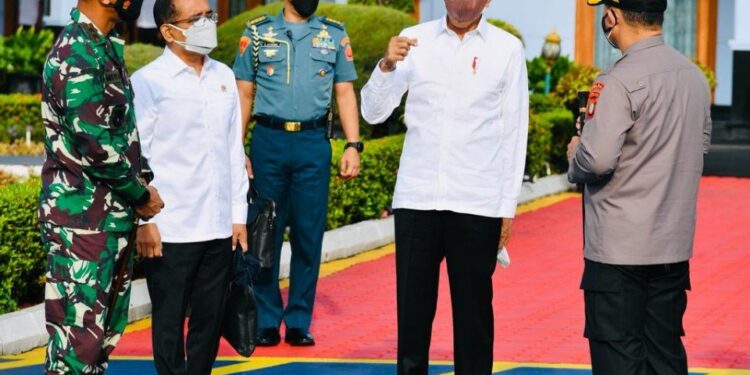JAKARTA – Presiden Joko Widodo melakukan kunjungan kerja ke Provinsi Kalimantan Utara (Kaltara), Selasa (19/10/2021). Melalui Pangkalan TNI AU Halim Perdanakusuma, Jakarta, Presiden bersama rombongan terbatas lepas landas menggunakan pesawat Kepresidenan Indonesia-1 sekitar pukul 07.30 WIB.