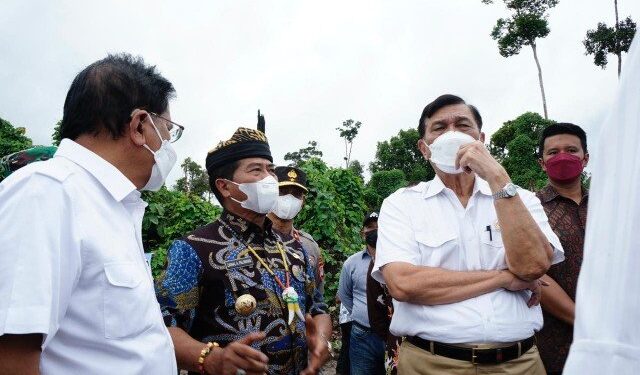 TANJUNG SELOR – Mengawali aksinya dalam kunjungan kerja di Kalimantan Utara (Kaltara), Luhut Binsar Pandjaitan selaku Menteri Koordinator (Menko) Kemaritiman dan Investsi (Marves) Republik Indonesia dan Sofyan Djalil selaku Menteri Agraria dan Tata Ruang (ATR) Indonesia beserta rombongan melakukan rapat koordinasi di Aula Gedung Gabungan Dinas Pemerintah Provinsi (Pemprov) Kaltara, Kamis (2/12/2021).