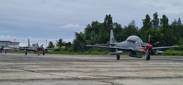 TARAKAN – Tiga pesawat Super Tucano tiba di Pangkalan Udara (Lanud) Anang Busra Tarakan sejak Selasa (22/2/2022).