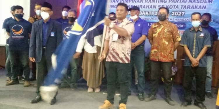 DPD Partai NasDem Tarakan melantik Dewan Pimpinan Ranting (DPRT) di 20 kelurahan se-Tarakan yang berlangsung di Hotel Duta, Sabtu (12/3/2022). Merekalah yang nantinya bertugas menggalang dukungan di akar rumput.