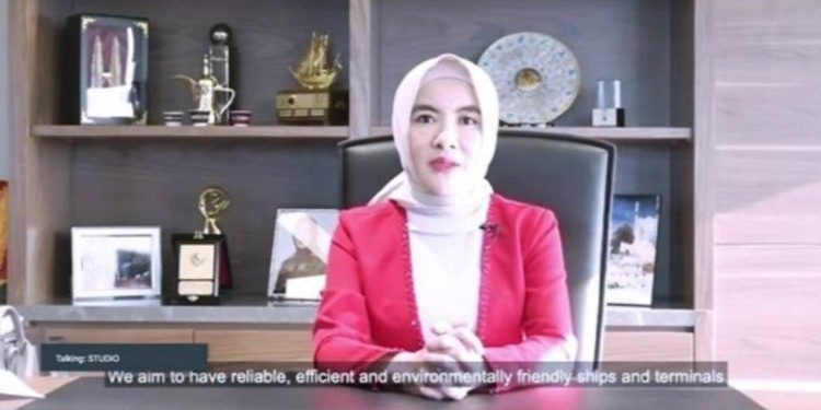 Direktur Utama Pertamina Nicke Widyawati memberikan sambutan pada acara Media Briefing Pertamina - Dubai Expo. (foto: Humas PT Pertamina (Persero)).