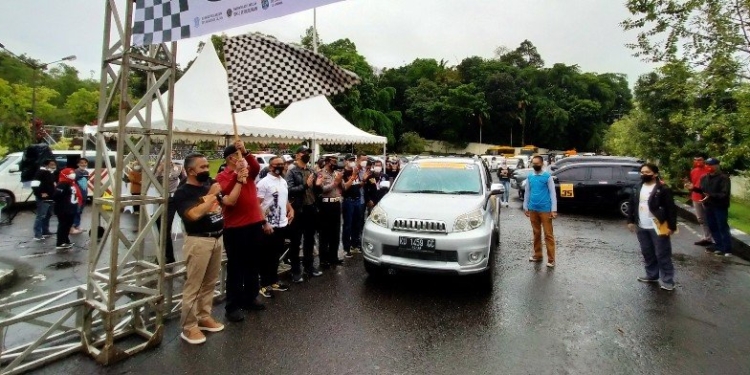TARAKAN – Wali Kota Tarakan dr. H. Khairul M.Kes melepas peserta Wali Kota Tarakan Cup Kejuaraan Provinsi (Kejurprov) Rally Wisata Seri I di halaman Rumah Jabatan (Runjab) Wali Kota Tarakan, Minggu (27/3/2022).