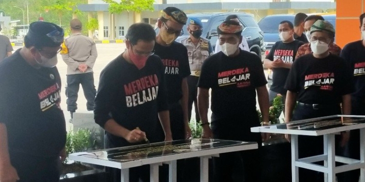 Mendikbudirestek Nadiem Anwar Makarim meresmikan gedung laboratorium di UBT. (foto: jendelakaltara.co)