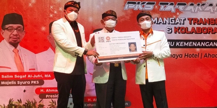 Dalam kesempatan itu, pria yang juga menjabat Wakil Wali Kota Tarakan itu diperkenalkan sebagai anggota baru PKS dengan menerima simbolis Kartu Tanda Anggota (KTA) dan seragam PKS.