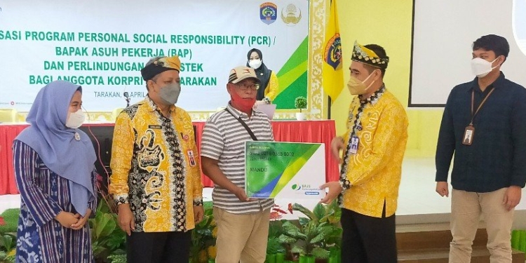 “Program ini tentu sebagai sarana bagi instansi pemerintah maupun perusahaan untuk membantu memberikan perlindungan jaminan sosial dengan membayar iuran BPJAMSOSTEK bagi tenaga kerja rentan yang belum terlindungi,” ujar Hamid Amren membacakan sambutan Wali Kota Tarakan.