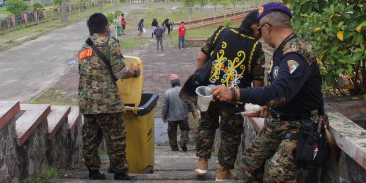 Dengan menggandeng Pemuda Ikatan Keluarga Toraja (PEMIKAT) Tarakan, anggota LPADKT-KU Cabang Tarakan membersihkan di sekitar Masjid Baitul Izzah, Islamic Center, Kelurahan Kampung Empat, Minggu (10/4/2022) sore.