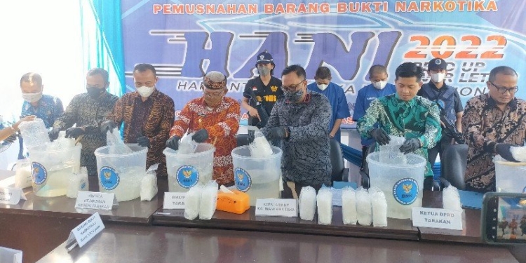 TARAKAN – Di momentum peringatan Hari Anti Nakotika Internasional (HANI) 2022, Badan Narkotika Nasional (BNN) Provinsi Kalimantan Utara (Kaltara) memusnahkan 22,8 kilogram narkotika jenis sabu.