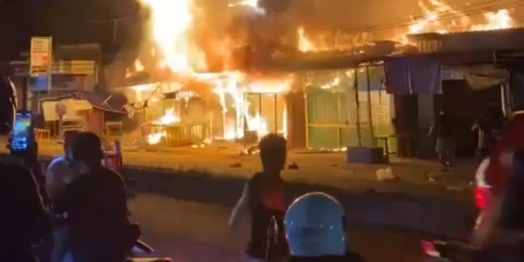 TARAKAN – Kebakaran menghanguskan 6 unit bangunan kios semi permanen di Jalan Aki Balak RT 28 Kelurahan Karang Anyar Pantai, Kecamatan Tarakan Barat, Minggu (26/6/2022).