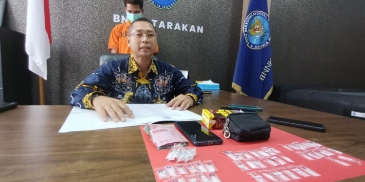 “Barang bukti yang kami amankan yaitu dari tersangka, 54 bungkus plastik bening berisi serbuk kristal putih yang diduga narkotika jenis sabu dengan berat 13,43 gram, 1 buah dompet warna hitam, 2 buah peniti, 1 buah kotak bekas minuman teh, 1 unit HP, uang tunai sebesar 2 juta,” ujar Kepala BNNK Tarakan Agus Sutanto dalam konferensi persnya, Selasa (31/5/2022) di kantornya.