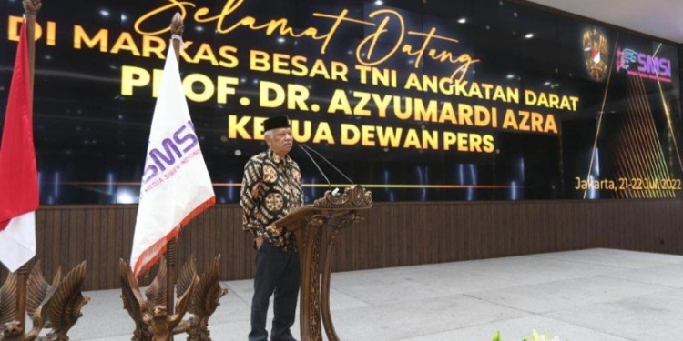 JAKARTA – Berbicara di depan para pimpinan Serikat Media Siber Indonesia (SMSI), Ketua Dewan Pers Prof. Dr. Azyumardi Azra mengajak untuk mengembangkan jurnalisme Pancasila.