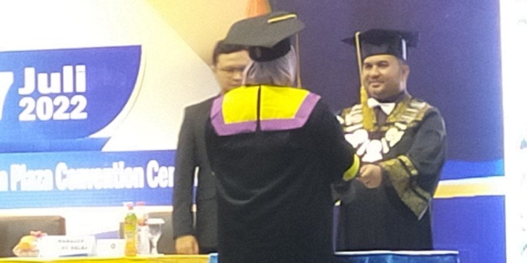 Wisuda Daerah digelar di Convention Center, Hotel Tarakan Plaza, Minggu (17/7/2022), disaksikan juga Wali Kota Tarakan dr. H. Khairul M.Kes, Wakil Rektor Bidang Keuangan dan Umum UT Prof. Ali Muktiyanto S.E, M.Si dan sejumlah sejumlah tamu undangan serta keluarga wisudawan-wisudawati.