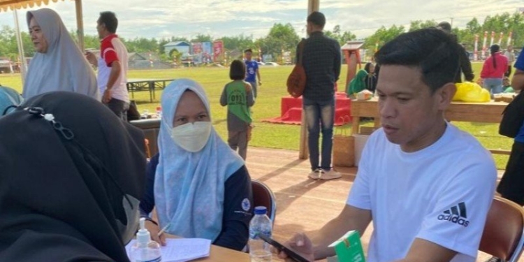 Jamhari turut berbaur bersama masyarakat mengikuti jalan sehat. Selain itu, kesempatan tersebut juga dimanfaatkan Jamhari untuk memeriksa kesehatan. (jkr)