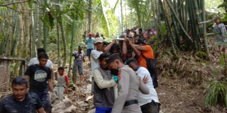 Sagala berhasil dikeluarkan dari timbunan setelah anggota rescue dari PMK Sektor Tarakan Utara dibantu warga sekitar melakukan evakuasi.
