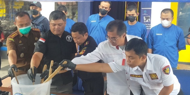 TARAKAN – Badan Narkotika Nasional Provinsi (BNNP) Kalimantan Utara (Kaltara) kembali memusnahkan barang bukti narkotika jenis sabu di kantornya, Tarakan, Selasa (27/9/2022).