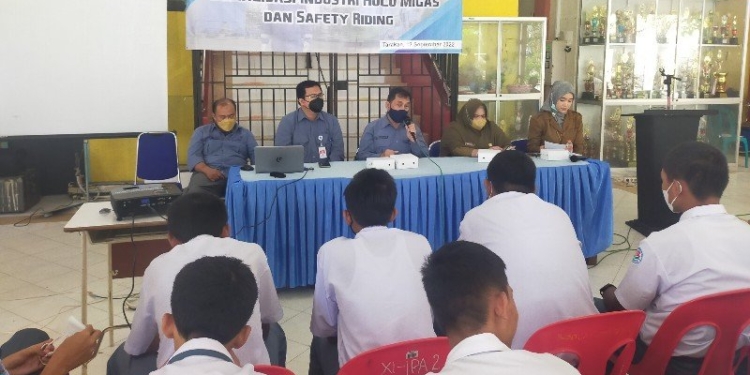 Selain memberikan pemahaman terkait operasional hulu migas, dalam kesempatan tersebut siwa juga dibekali dengan safety riding. Ini penting dilakukan karena kebanyakan menggunakan motor untuk ke sekolah.