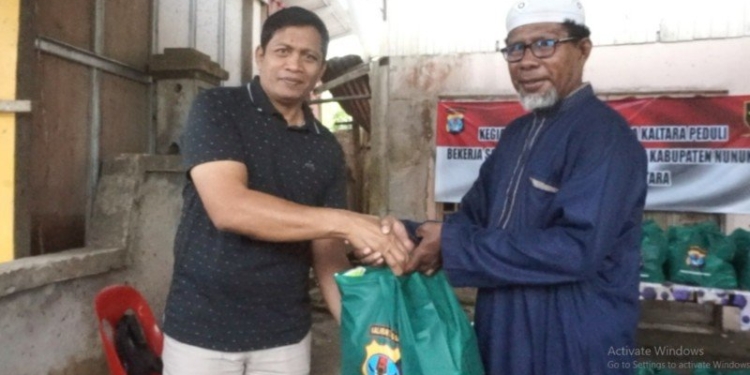 Menggandeng Partai Ummat, Polda Kaltara menyerahkan paket kebutuhan pokok kepada masyarakat terdampak bertempat di Pondok Pesantren (Ponpes) Hidayatullah, Kelurahan Selusin, Kecamatan Nunukan Selatan, Selasa (27/9/2022).