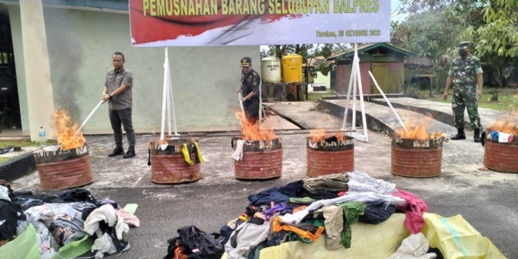 Dalam pengungkapan kasus pada 9 Oktober 2022 malam hari itu, aparat menggagalkan 32 koli baju bekas di RT 12 Kelurahan Juata Laut, Kecamatan Tarakan Utara.