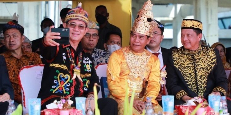 Nampak diantaranya Anggota DPD RI sekaligus Presiden Majelis Adat Dayak Nasional (MADN), Dr. Drs. Marthin Billa M.M, Ketua DPRD Kaltara, Albertus Stefanus Marianus S.T, Kapolda Kaltara Irjen Pol Daniel Adityajaya S.H, S.I.K, M.Si, dan Komandan Korem 092/Maharajalila, Kolonel Arm Ari Estefanus S.Sos, M.Sc.