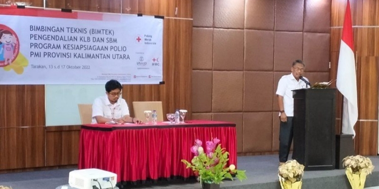 TARAKAN – Mencegah masuknya penyakit polio masuk ke Indonesia, Palang Merah Indonesia (PMI) Kalimantan Utara (Kaltara) melaksanakan Bimbingan Teknis (Bimtek) Pengendalian Kejadian Luar Biasa (KLB) dan Surveilans Berbasis Masyarakat (SBM) Program Kesiapsiagaan Polio.