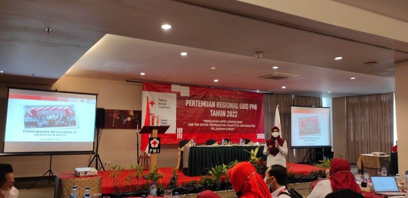 Kegiatan Pertemuan Regional 2 UDD PMI Tahun 2022 dibuka Ketua Bidang Pengembangan UDD PP PMI, dr. Linda Lukitari Waseso.