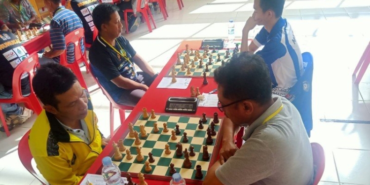 Pecatur Tarakan MN Syaprullah (kiri) saat memainkan pertandingan di nomor catur standar. (foto: IST)