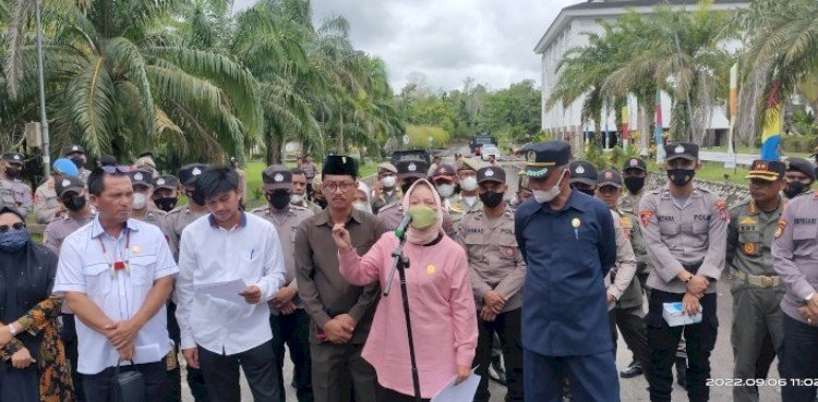 Ketua DPRD Nunukan Hj. Leppa dan anggota dewan menerima unjuk rasa mahasiswa. (foto: IST)