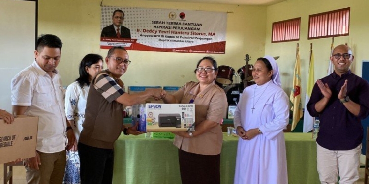 Jumat (27/1/2023), politisi PDI Perjuangan ini menyerahkan bantuan senilai Rp 100.000.000 kepada SMP Katolik Fransiskus Xaverius Tarakan di Juata Permai.