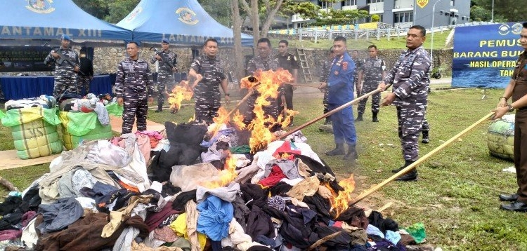 Dipimpin langsung Komandan Lantamal XIII/Tarakan Laksamana Pertama TNI Fauzi, pemusnahan dilakukan dengan cara membakar ballpress berisi pakaian bekas impor itu.