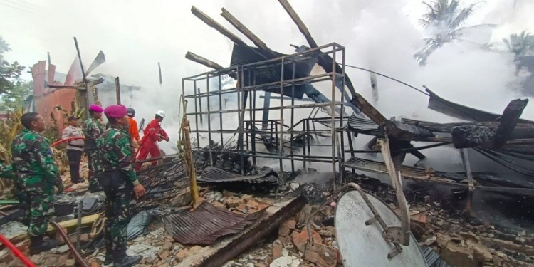 “Sudah kena sebagian jadi kami bongkar. Kalau kami tidak bongkar, ya semuanya habis,” tuturnya. Belum diketahui penyebab kebakaran.