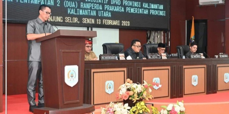 TANJUNG SELOR – Rapat Paripurna ke II Masa Persidangan I Tahun 2023 dengan agenda Penyampaian Nota Pengantar Rancangan Peraturan Daerah (Ranperda) Inisiatif Dewan Perwakilan Rakyat Daerah (DPRD) Kalimantan Utara (Kaltara) dan Prakarsa Pemerintah Provinsi (Pemprov) Kaltara.