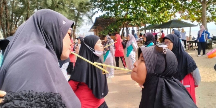 Kegiatan ini merupakan bagian dari keseruan outbond yang digelar Puskesmas Mamburungan di wisata Amal Beach, Binalatung, Minggu (26/2/2023).