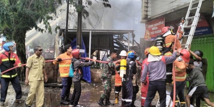 Di sisi kanan, api melahap lantai dua warung nasi lalap Niaga. Sementara di sisi kiri membakar lantai dua toko bangunan. Selain itu, pihaknya juga mendapatkan informasi adanya korban luka bakar dari peristiwa ini.