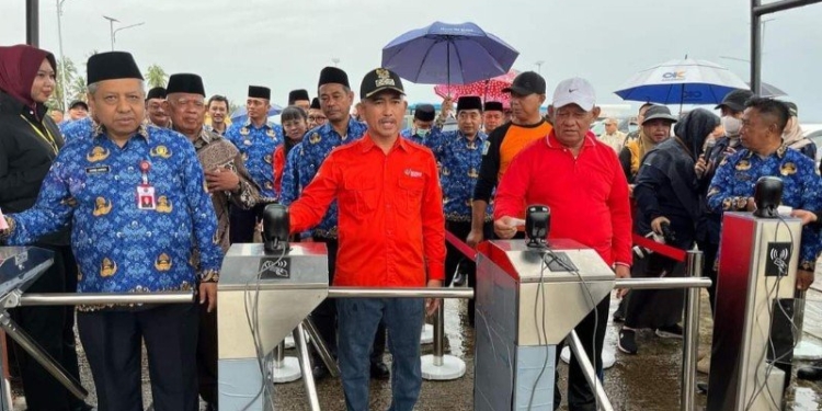 Wali Kota Tarakan dr. H. Khairul M.Kes mencoba pintu masuk dengan sistem tiketing. (foto: Bagian Prokompim Setda Tarakan)