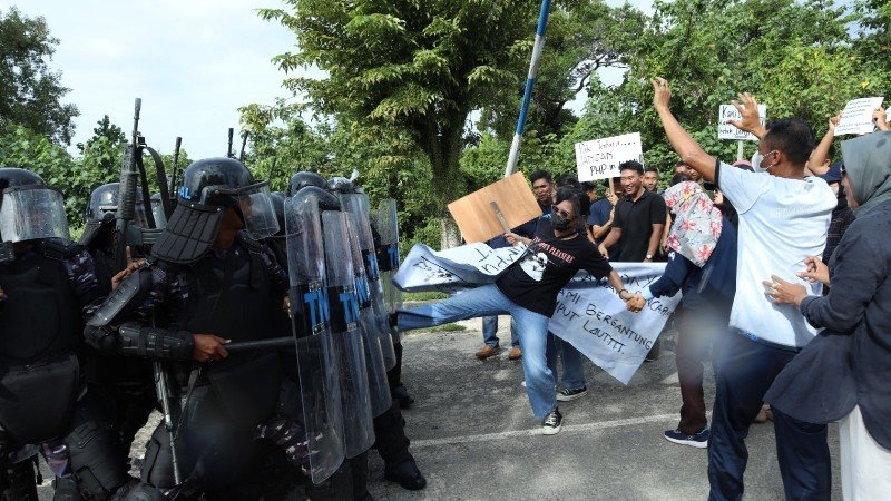 Dalam menghadapi massa, personel yang terdiri dari prajurit Lantamal XIII dan Yonmarharlan dilengkapi peralatan pengamanan PHH lengkap. Mereka membentuk formasi dan melaksanakan prosedur penindakan dan berhasil memukul mundur demonstran.