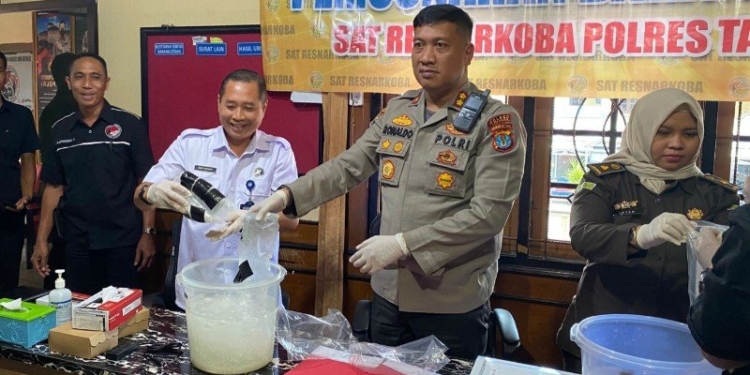 TARAKAN – Sebanyak 2.697,94 gram atau 2,6 Kg sabu dimusnahkan oleh Kepolisian Resort (Polres) Tarakan, Kamis (16/3/2023).