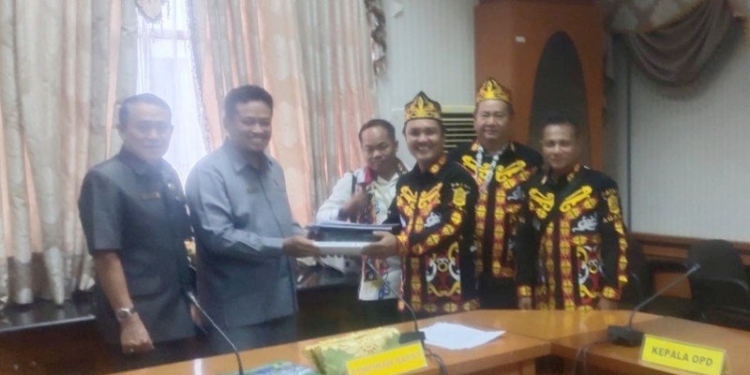 Kedatangan Kepala Adat Besar Dayak Agabag dan rombongan untuk menolak Raperda Perudaban atas Perda Nomor 16 Tahun 2018 tentang Pemberdayaan Masyarakat Hukum Adat.