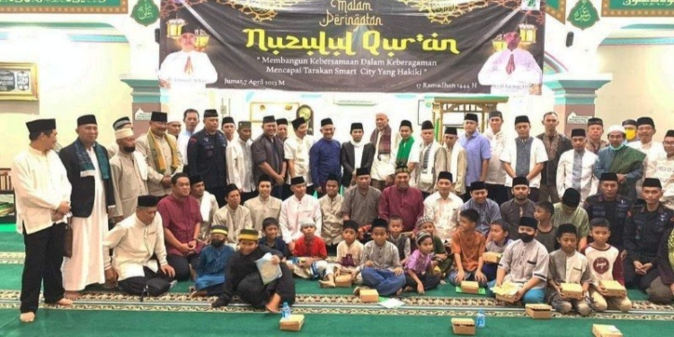 TARAKAN – Safari Ramadan Pemerintah Kota (Pemkot) Tarakan pada malam ke-17, dirangkai dengan peringatan Nuzulul Qur’an, dilaksanakan di Masjid Jami’ Nurul Islam, Kelurahan Pamusian, Kecamatan Tarakan Tengah, Jumat (7/4/2023).