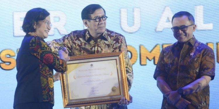 Menteri Hukum dan HAM, Yasonna H. Laoly menerima penghargaan dari Kemenkeu, Sri Mulyani. (foto: IST)