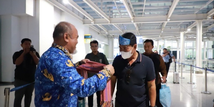 Nampak Kepala Dinas Pemuda dan Olahraga (Dispora) Kaltara, Obed Daniel Lumban Tobing bersama pemerintah setempat menyambut kedatangan Gubernur setibanya di bandara.