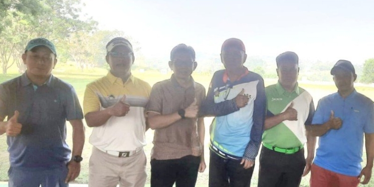 Tim golfer Kaltara di venue pertandingan untuk uji coba lapangan. (foto: IST)