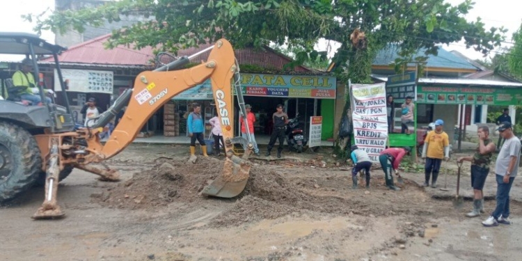 Alat berat dikerahkan untuk membantu perbaikan jalan. (foto: Humas Chipmil)