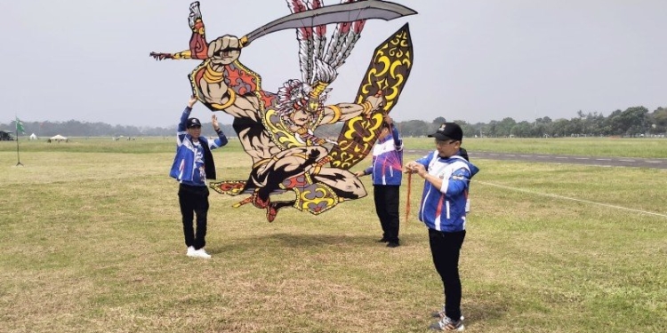 Sempat Terkendala Teknis, Layangan Tarian Perang Nusantara Terbang di Ajang Fornas VII Jawa Barat