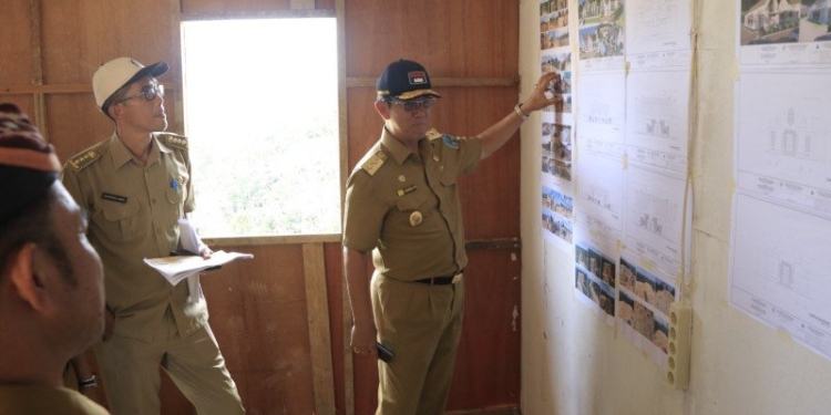 TANJUNG SELOR – Usai meninjau pembangunan gedung asrama Pendidikan dan Pelatihan (Diklat) di lokasi Kota Baru Mandiri (KBM) Tanjung Selor, Wakil Gubernur Kalimantan Utara (Kaltara), Dr. Yansen TP, M.Si mengecek perkembangan proyek pembangunan Rumah Jabatan (Rumjab) Gubernur Kaltara, Selasa (12/9/2023).