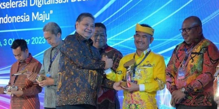 Penghargaan ini diserahkan langsung Menteri Koordinator Perekonomian RI, Airlangga Hartarto kepada Wali Kota Tarakan, dr. H. Khairul, M.Kes., dalam Rapat Koordinasi Nasional (Rakornas) TP2DD di Hotel Grand Sahid Jaya, Jakarta, Selasa (3/10/2023).