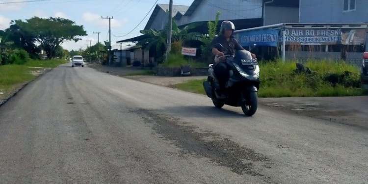 Jalan Cendana di Kelurahan Tanjung Selor Hilir, Kecamatan Tanjung Selor, Bulungan, baru saja diaspal menjelang akhir tahun lalu. Namun, belum lama dilalui warga, beberapa titik di ruas jalan tersebut mulai rusak.