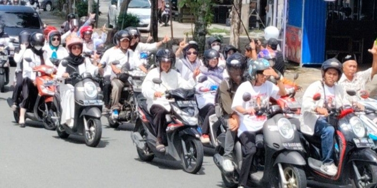Mengenakan kemeja dan t-shirt putih, massa konvoi menuju Sekretariat Tim Penjaringan DPW PAN Kaltara di Tarakan, Sabtu (27/4/2024).