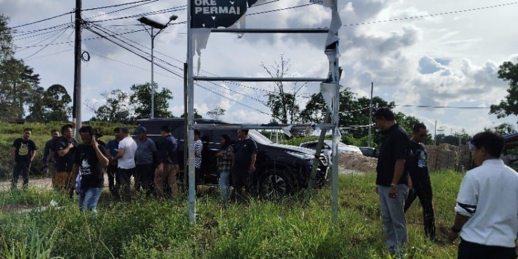 “Saya mendapat info dari oknum satpol PP yang pengrusakan baliho kami sebagai penanda perumahan kami itu dirusak oleh atas perintah dari walpri dari TNI AD masih aktif,” ujar Karno Hermanto.