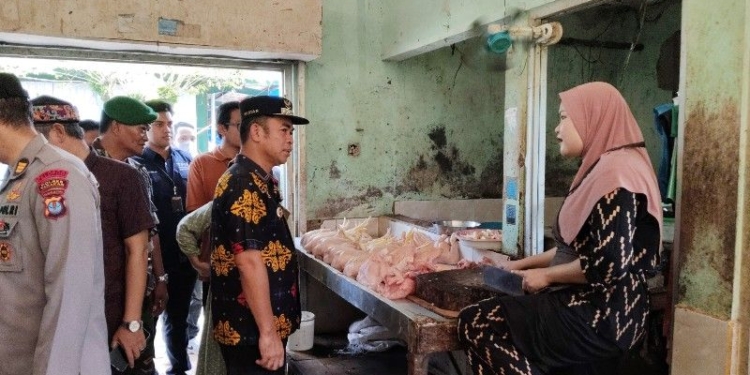 Penjabat (Pj) Walikota Tarakan, Bustan bersama Forkopimda dan Tim Pengendalian Inflasi Daerah (TPID) Tarakan memantau ketersediaan bahan pokok penting di pasar Tenguyun dan gudang Bulog.